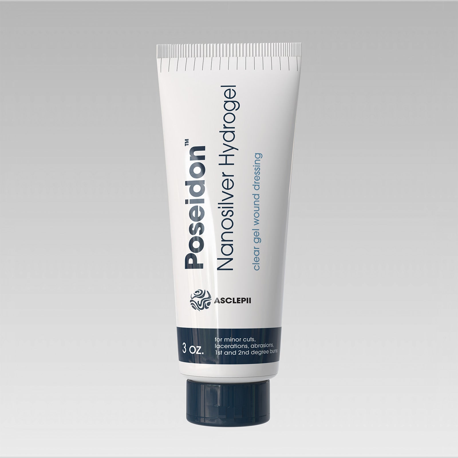 Poseidon™, a nanosilver hydrogel that helps wounds heal faster and safer. Silver is known to kill harmful microbes and disrupt biofilms, but is toxic at higher concentrations. With the lowest silver concentration on the market, Poseidon™ protects healthy tissue — reducing infection risk and speeding recovery. The future of wound care — now available (Rx & OTC).